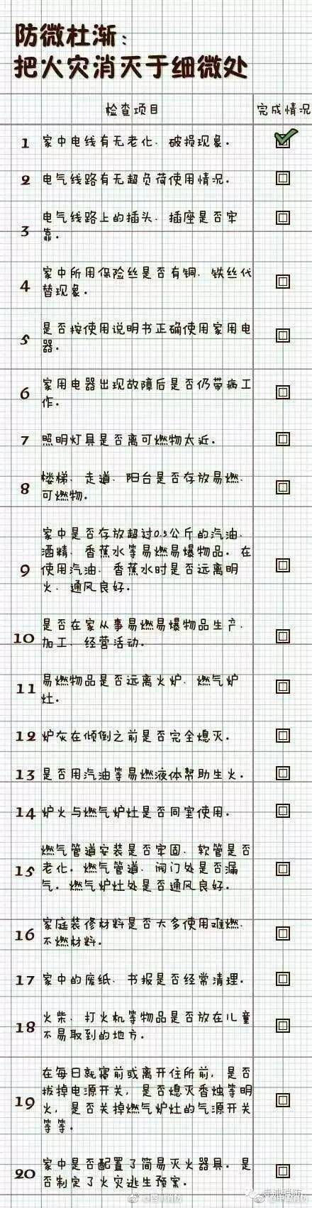 最后送上一份家庭消防安全自查表!