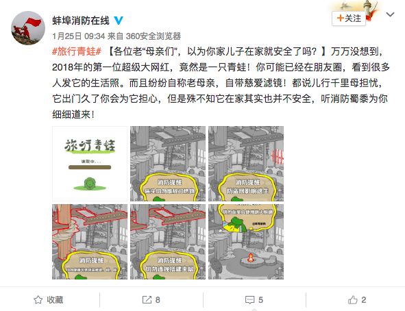 你的蛙不仅让公安部消防局的微博操碎了心,安徽省蚌埠消防支队的官方微博@蚌埠消防在线也为大家前来“授课”!